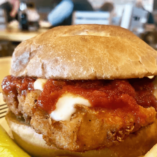 Choice of white or wheat bread, kaiser roll or burger bun. Chicken, marinara sauce, parmesan and mozzarella cheeses.
