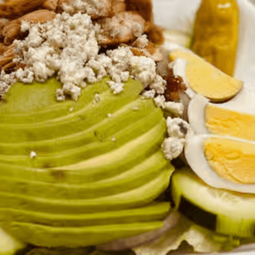 Served with fries, chicken salad, lettuce, tomatoes, onions, American cheese .