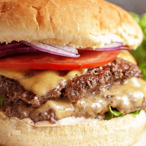 2 smashed burger patties secret sauce, shredded lettuce, tomato, sauteed onion, served with fries